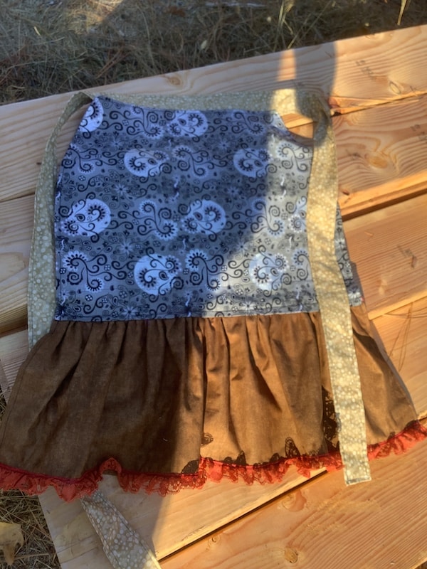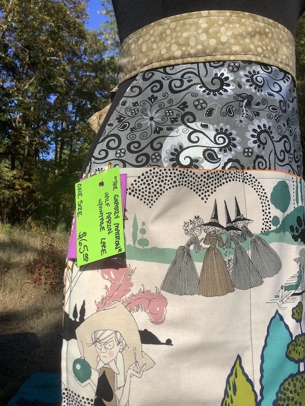 Handcrafted with care from dead stock fabrics, this apron pairs a vintage-inspired silhouette with dramatic ruffled trim; creating a flattering, feminine shape that’s both fun and functional. Whether you’re stirring the cauldron or serving up spooky snacks, this apron will have you looking hauntingly fabulous!