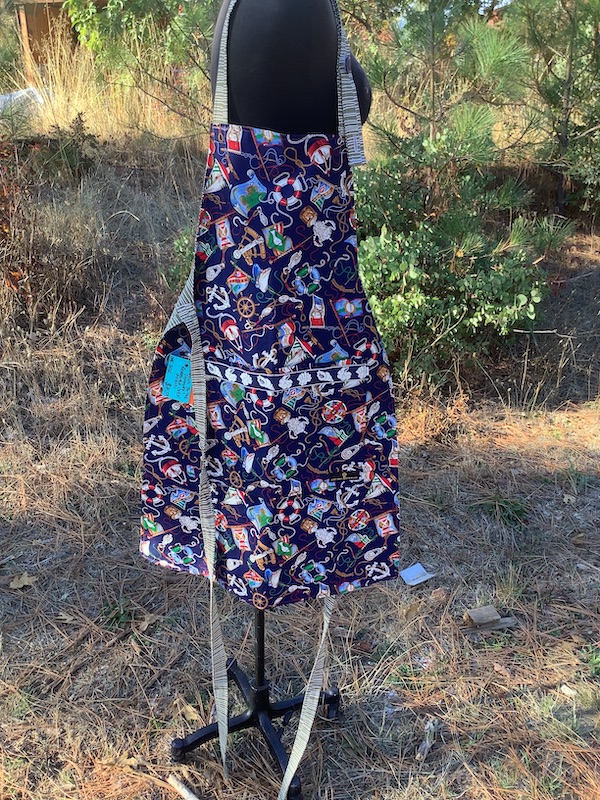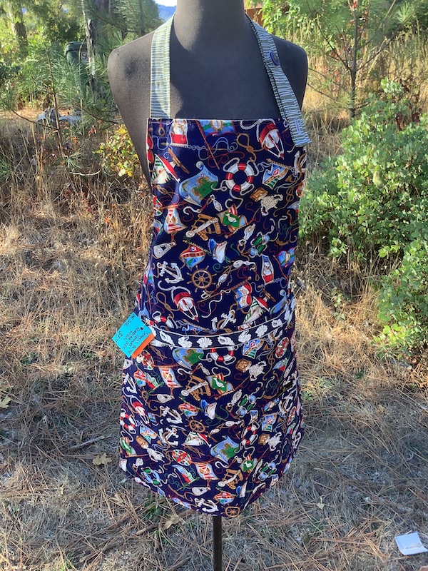 Set sail cooking in style with this one of a kind, handmade apron – perfect for chefs, bakers, or anyone who loves a coastal vibe! Featuring a nautical theme on one side, and a sandy beachcomber influenced design on the other – this apron is the ideal aesthetic way to bring the refreshing feeling you get oceanside into your kitchen.